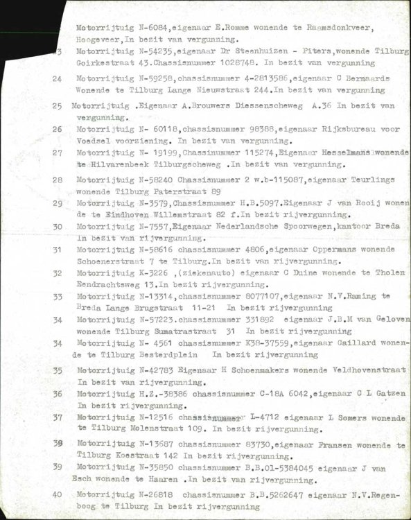 En zelfs als je een motorvoertuig had, dan dat wilde nog niet zeggen dat je het ook mocht gebruiken. Op 18 en 19 december 1944 werd er gecontroleerd of de berijders van motorvoertuigen wel een rijvergunning hadden. Onder nummer 24 op de lijst wordt "Motorrijtuig N-59258" van C. Bernaards uit Tilburg genoemd. Hij was in het bezit van een rijvergunning.