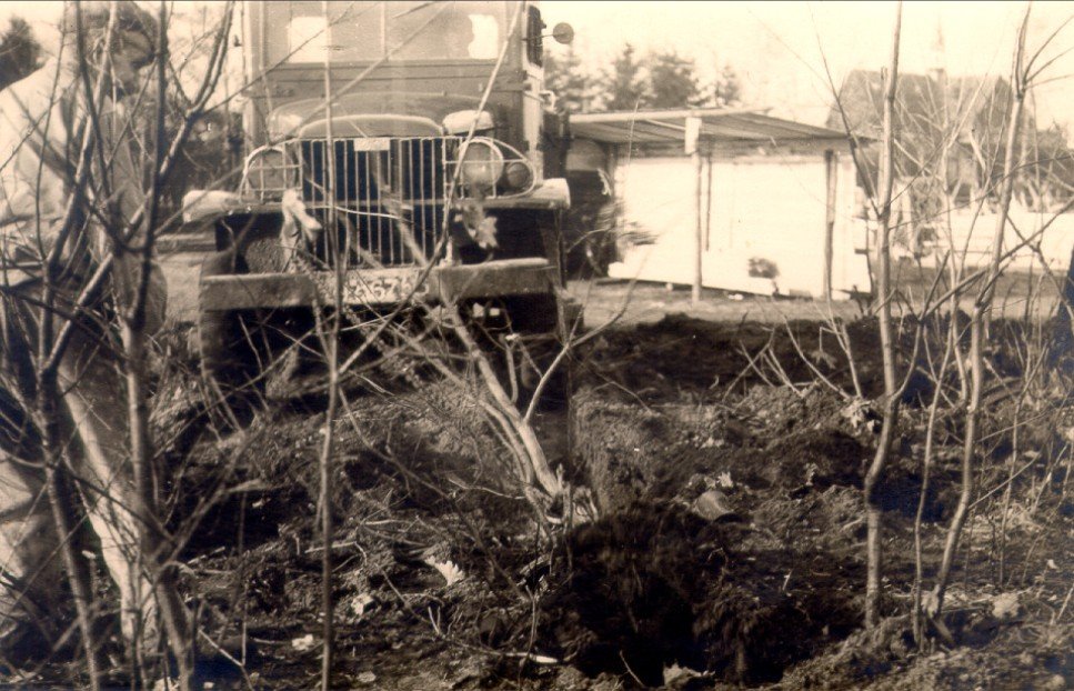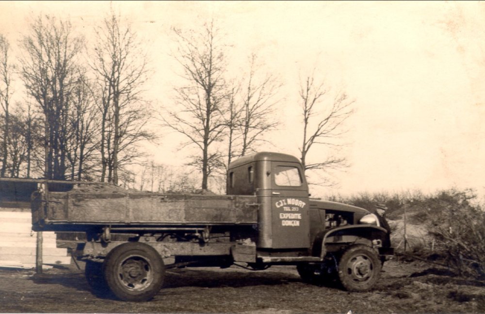 Helemaal zeker is het niet. Op de eerste foto is van de nummerplaat 8675 te lezen, tussen de takken door van de struik die de vrachtwagen uit de grond trekt. Het laatste cijfer - deels zichtbaar - heeft onder een ronding. Daardoor lijkt een 0 het meest waarschijnlijk. N-86750 dus. Maar Van den Noort had ook de kentekens N-86751 en N-86752.